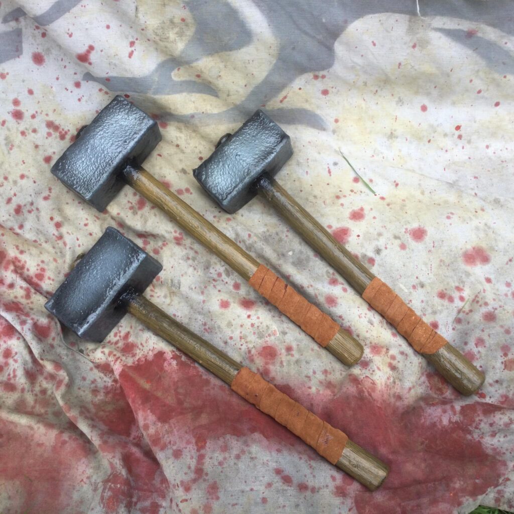 Note – Please consider whether these would reasonable as a day to day tool that is seriously used as a sidearm in this way, and not a comedy prop. Larp-safe food and drink items, even with knives included in their makeup are not appropriate and would not be able to do damage in the same way that a saw, rod or mallet can under the rules of Menhirs Fate.